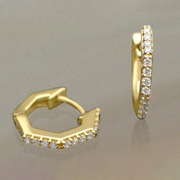 Lab Grown Diamond Hexagon Huggie Hoop Earrings | Modern Geometric Diamond Hoops