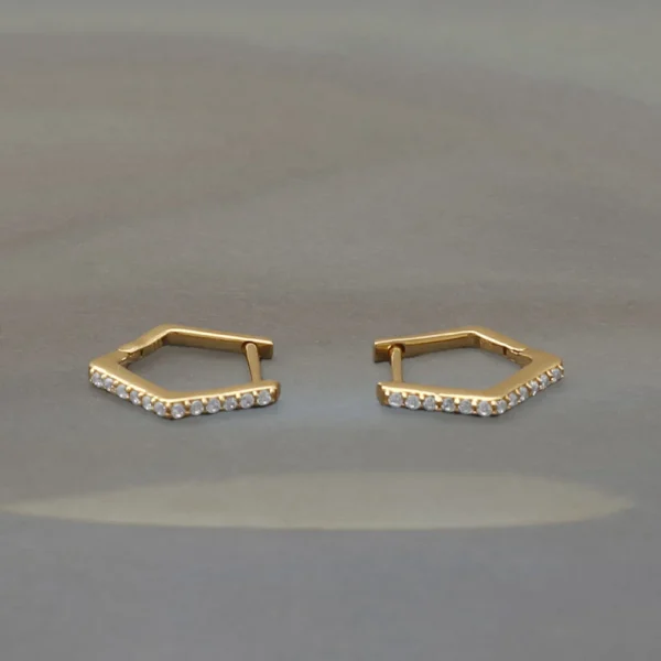 Pentagon Lab Grown Diamond Huggie Earrings Gold Plated Sterling Silver