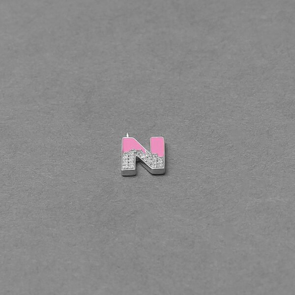 925 Sterling Silver Rhodium Plated Pendant With Natural Diamonds & Pink Enameling
