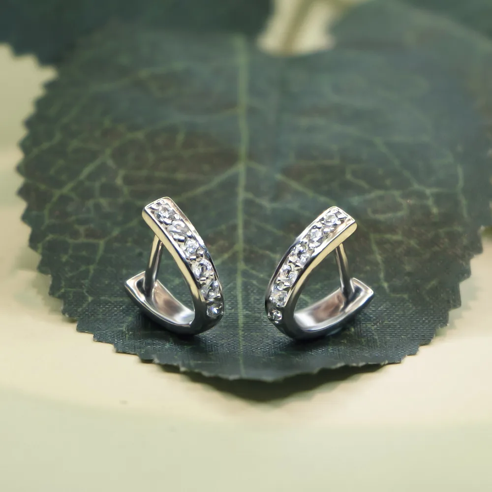 Gold Lab Grown Diamond Curved Huggie Hoop Earrings | Minimal Diamond Hoops