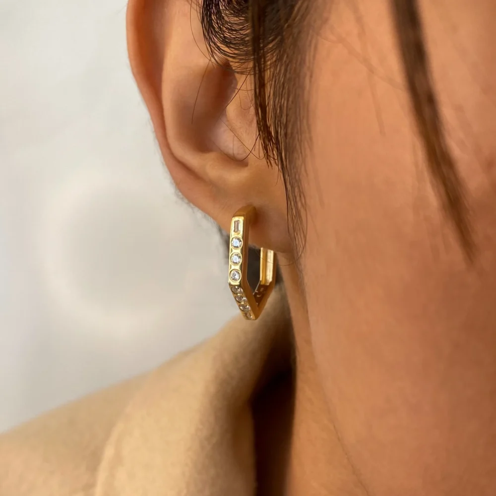 Hexagon Lab Grown Diamond Huggie Earrings in Gold Plated Sterling Silver