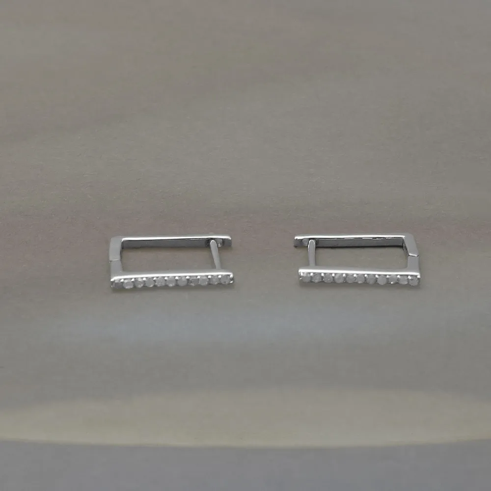 Lab Grown Diamond Bar Hoop Earrings in 925 Sterling Silver | Minimal Diamond Line Earrings